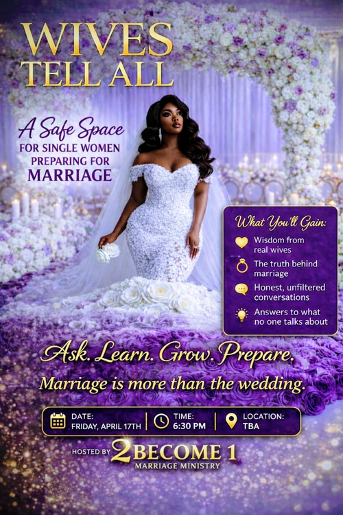 Calling all single women preparing for marriage. Join us for a powerful and transparent conversation designed to give you real insight beyond the fairytale. This is a safe and empowering space that offers wisdom from real wives, honest and unfiltered conversations, and answers to questions no one talks about.