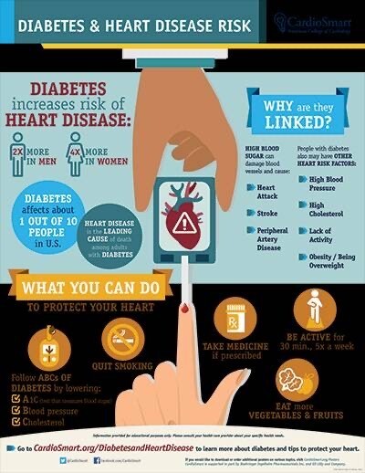 Happy Tuesday, I wanted to share some information with you all about type 2 diabetes (mellitus) and its relation to cardiovascular disease. According to Johns Hopkins University Medicine, people with diabetes mellitus are 2 to 4 times more likely to develop cardiovascular disease. Heart disease occurs when blood flow around the heart is slowed due to clogged arteries. So you ask how does diabetes affect your heart specifically? High blood sugar levels damage blood vessels over time making it more prone to the development of fatty deposits (aka clogged arteries)! Along with blood pressure control, blood sugar control also protects your heart! Diabetes and Heart Disease | Johns Hopkins Medicine